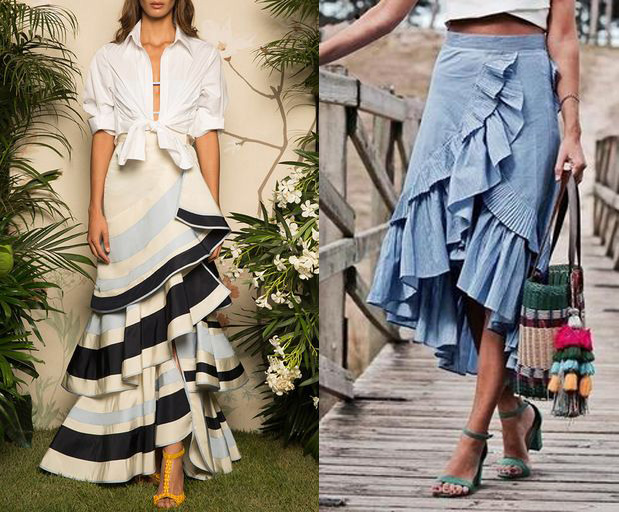 กระโปรง บาน ๆ พลิ้ว ๆ ตัวทรงกระโปรงจะมีเส้นแนวขวางคั่นเป็นชั้น ซึ่งอาจจะตกแต่งด้วยการเดินด้ายเป็นชั้น ๆ หรือนำผ้าอีกชั้นมาต่อเสริมกัน ซึ่งจะทำให้ดูเป็นคลื่น ๆ บนผ้าชั้นเดียว ซึ่งกระโปรงทรงนี้เป็นที่นิยมของเหล่าสาว ๆ ฝั่งทางยุโรป และอเมริกา เป็นอย่างมาก