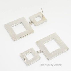 ต่างหูรูปทรงเรขาคณิต ตัวแป้นสี่เหลี่ยมเล็กห้อยด้วยสี่เหลี่ยมขนาดใหญ่ เพื่อให้ดูมีมิติ เหมาะกับสาว ๆ แฟชั่นอย่างเราเลยจร้า
