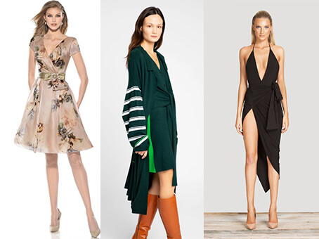 - เดรสผูกหน้า หรือเดรสผูกเอว (warp dress) เป็นตัวชุดที่ออกแบบโดยที่ไม่ต้องติดกระดุม หรือซิป แค่ผูกตรงเอวเท่านั้น